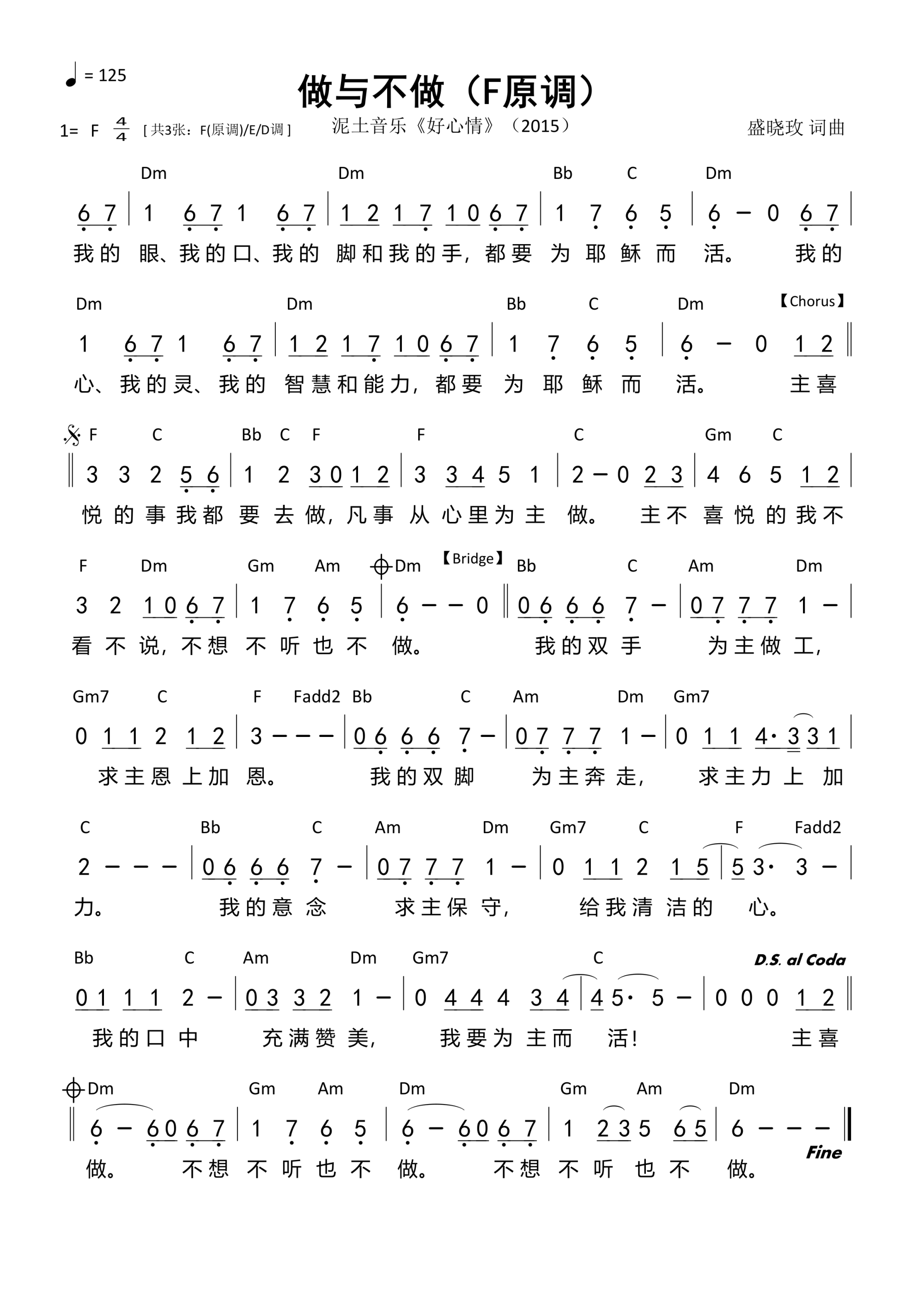 第539首 -做与不做(F原调)和弦简谱