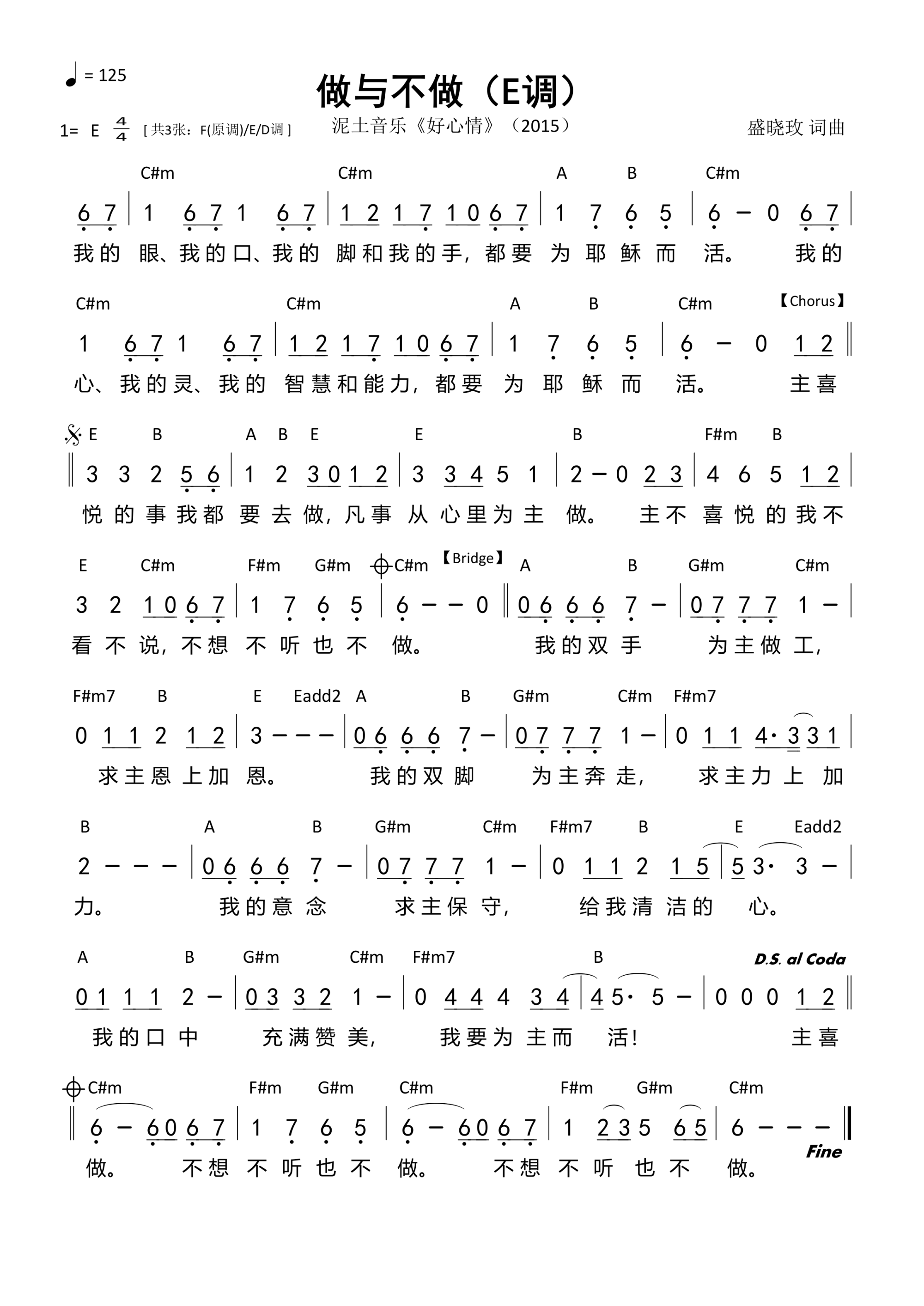 第543首 - 做与不做(E调)和弦简谱
