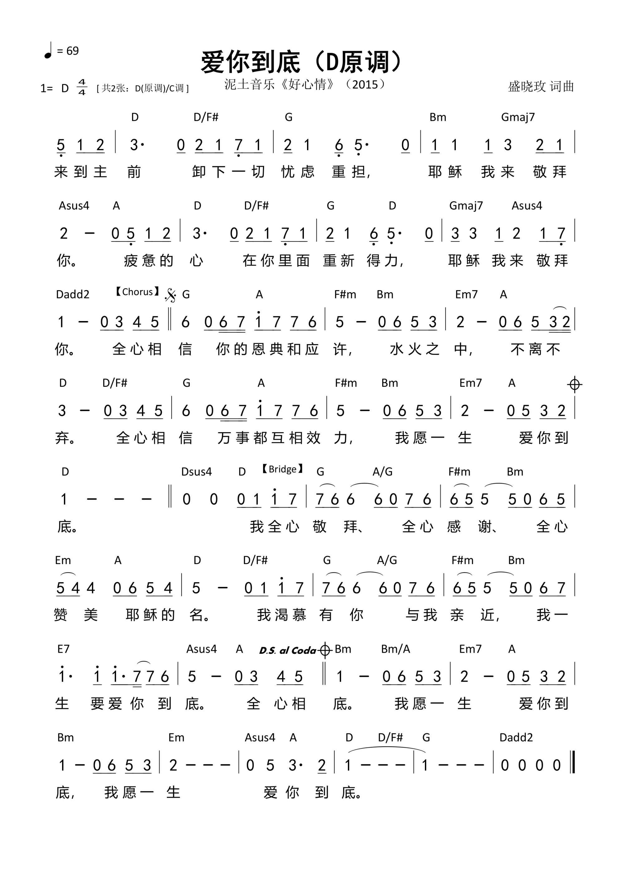 第1507首 -爱你到底(D原调)和弦简谱