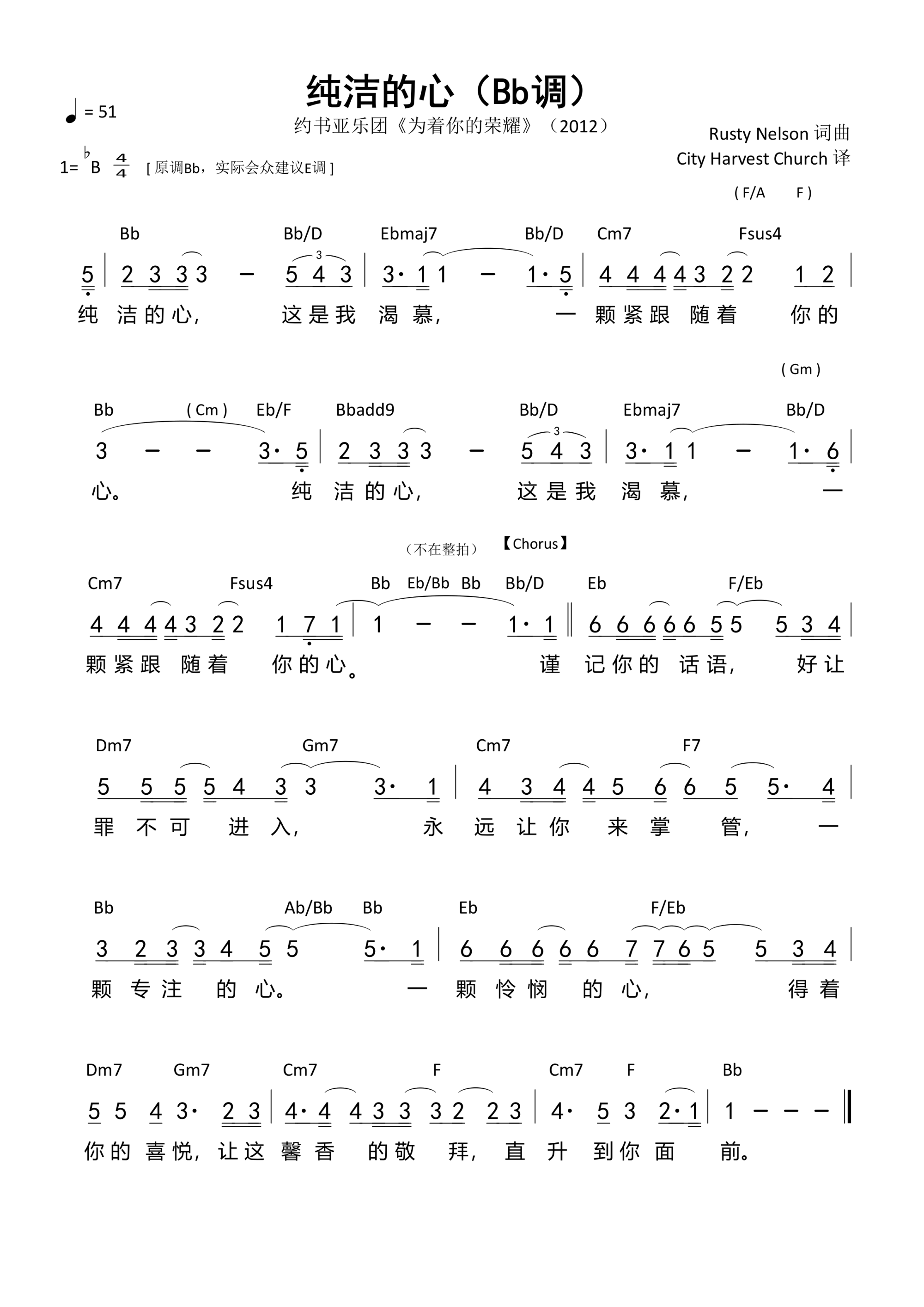第3984首 - 纯洁的心(Bb原调)和弦简谱