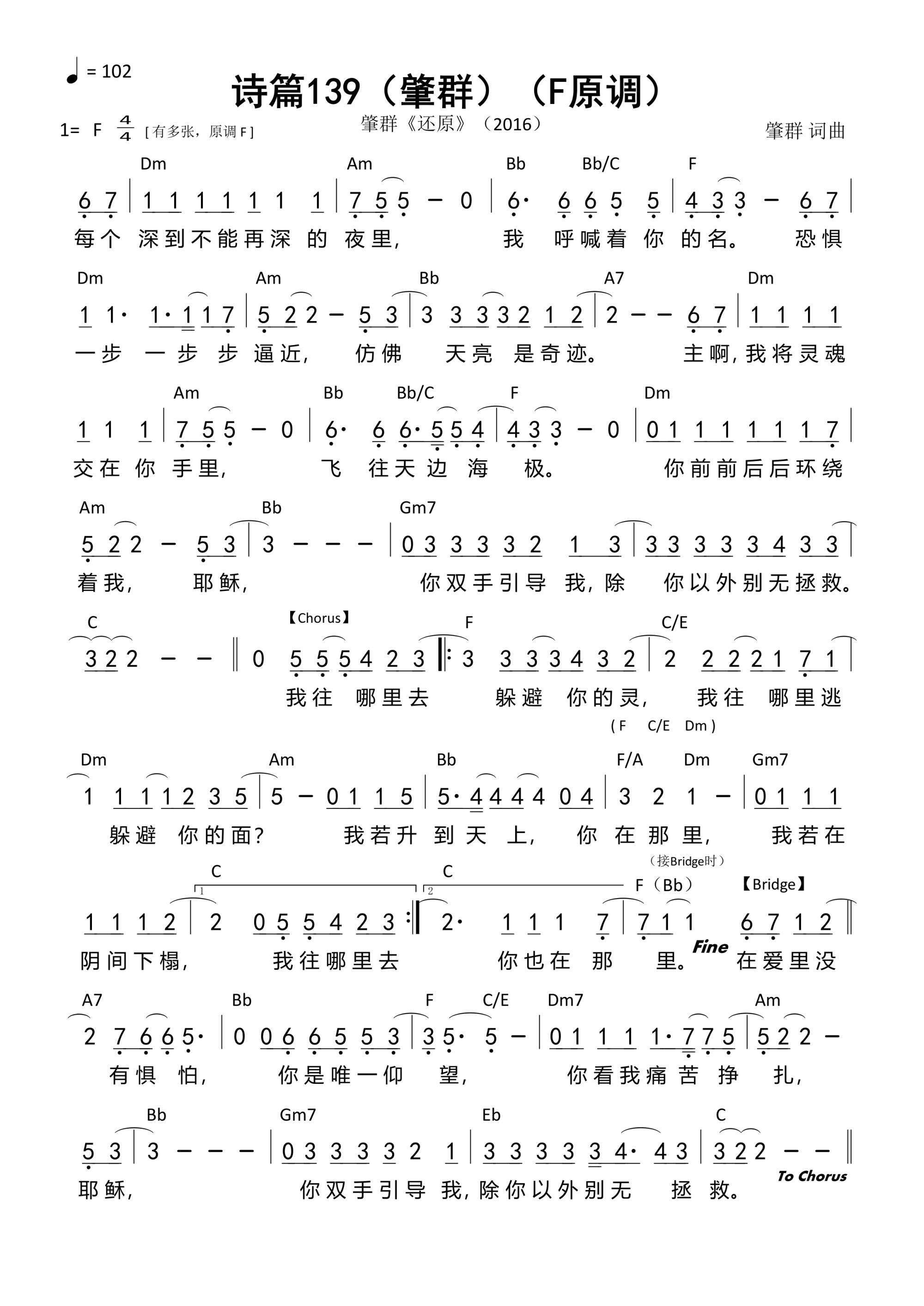 第4001首 - 诗篇139(肇群)(F原调)和弦简谱